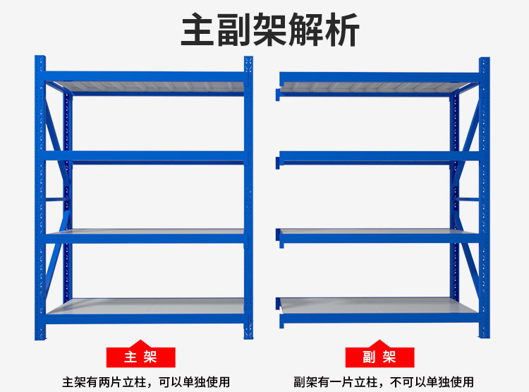 中量c型貨架是由立柱與橫斜撐組裝形成中型貨架柱片,柱片再與貨架橫梁及層板組裝而成。